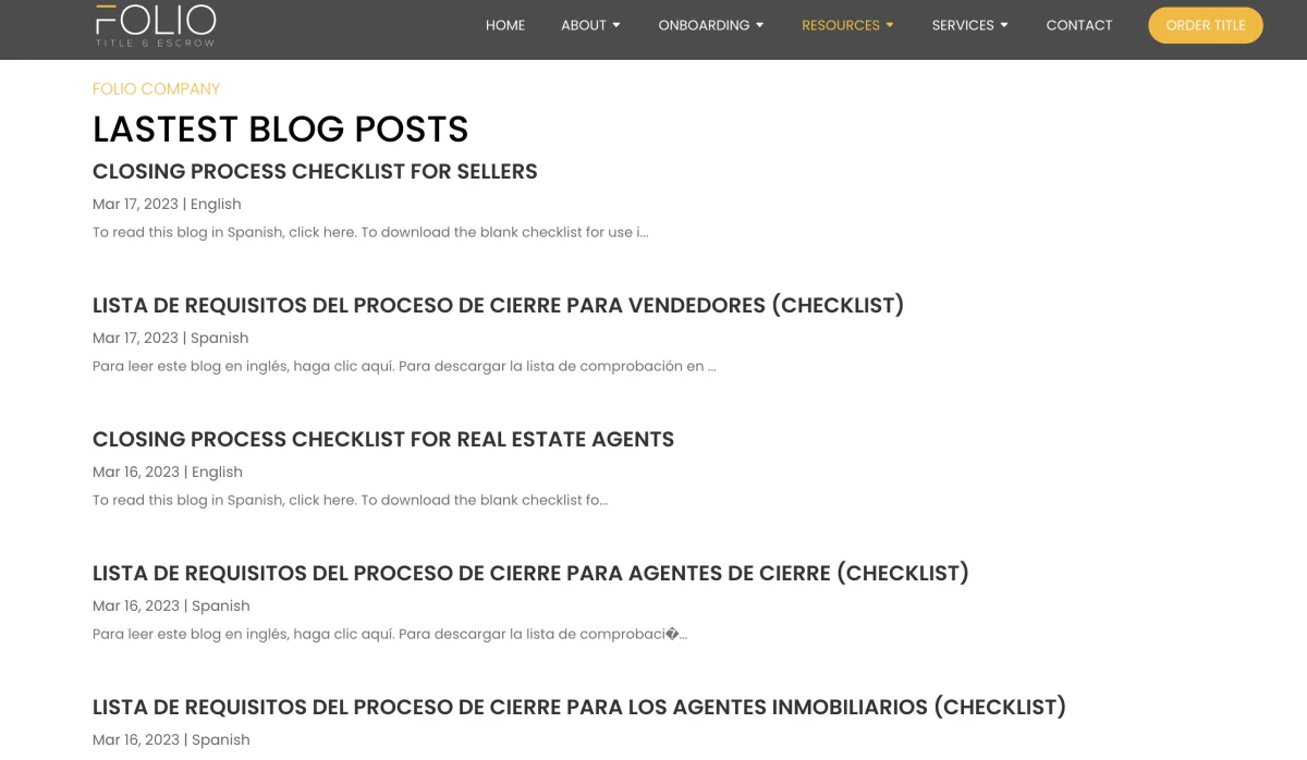 Spanish Language Blog Site: https://foliotitle.com/blog/spanish-blog/